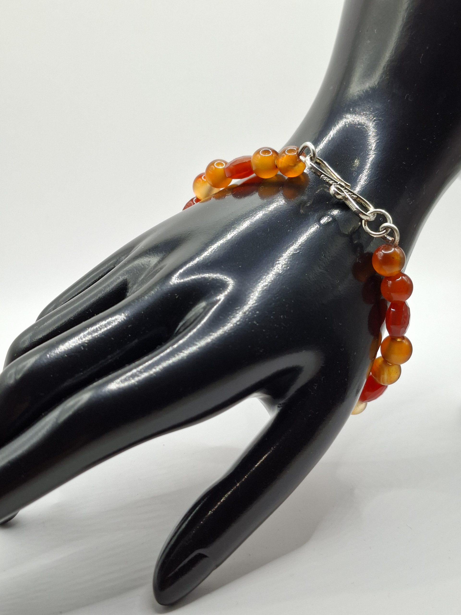 Complementing the beads, the bracelet is finished with a sleek silver clasp that adds a touch of elegance. The combination of bold, energetic colors and refined craftsmanship makes this piece perfect for anyone looking to inspire confidence or simply add a pop of color to their wardrobe. Whether you’re seeking motivation, inspiration, or a versatile accessory, the Red & Orange Carnelian Bracelet is a compelling addition to your jewelry collection.